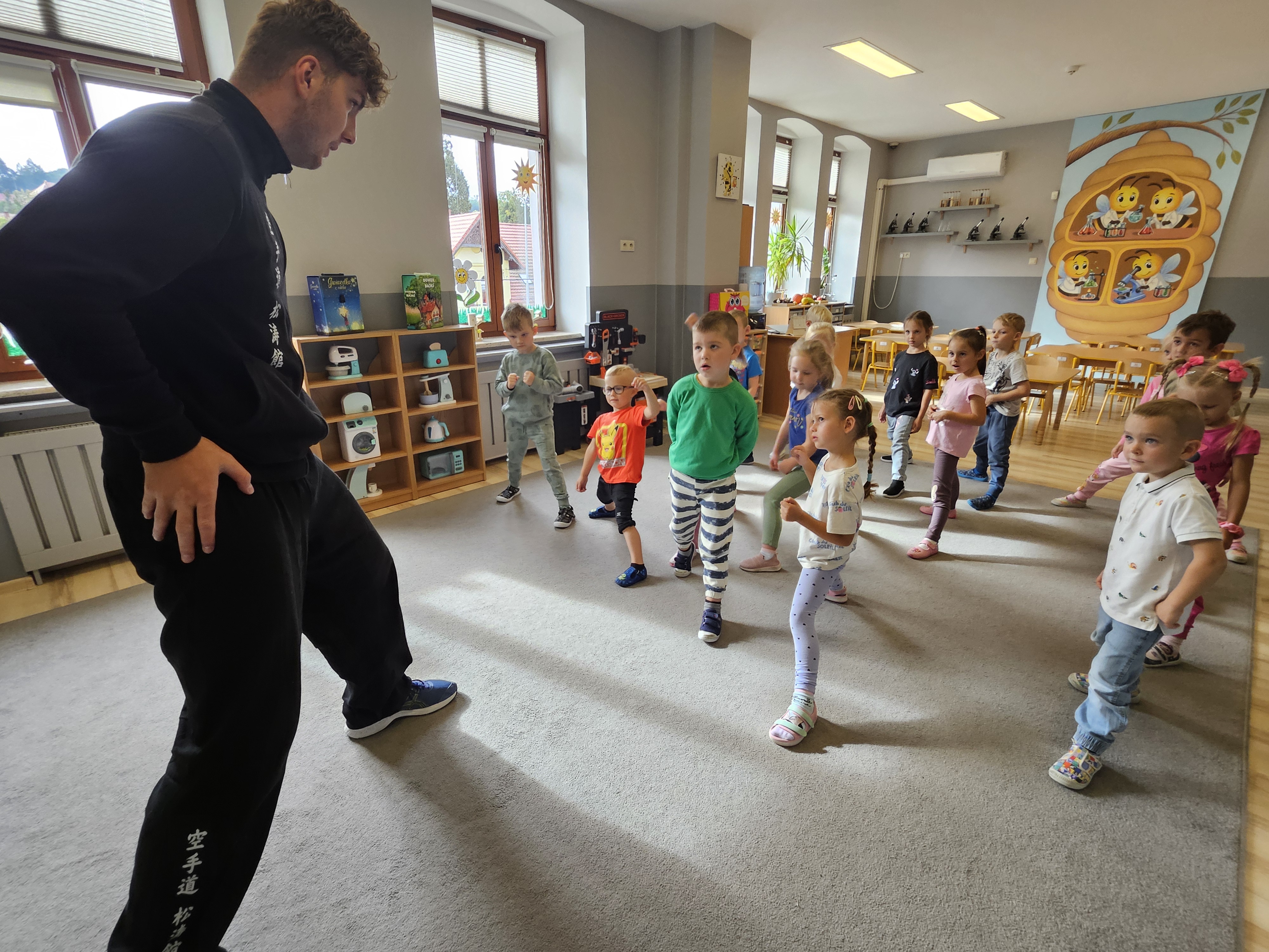 Aktywne Pszczółki na zajęciach z samoobrony z Trenerem Jakubem Jaworskim.