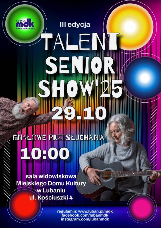 Miejski Dom Kultury w Lubaniu zaprasza na finał trzeciej edycji Talent Senior Show, wydarzenia prezentującego twórczość, pasję i artystyczne talenty seniorów.