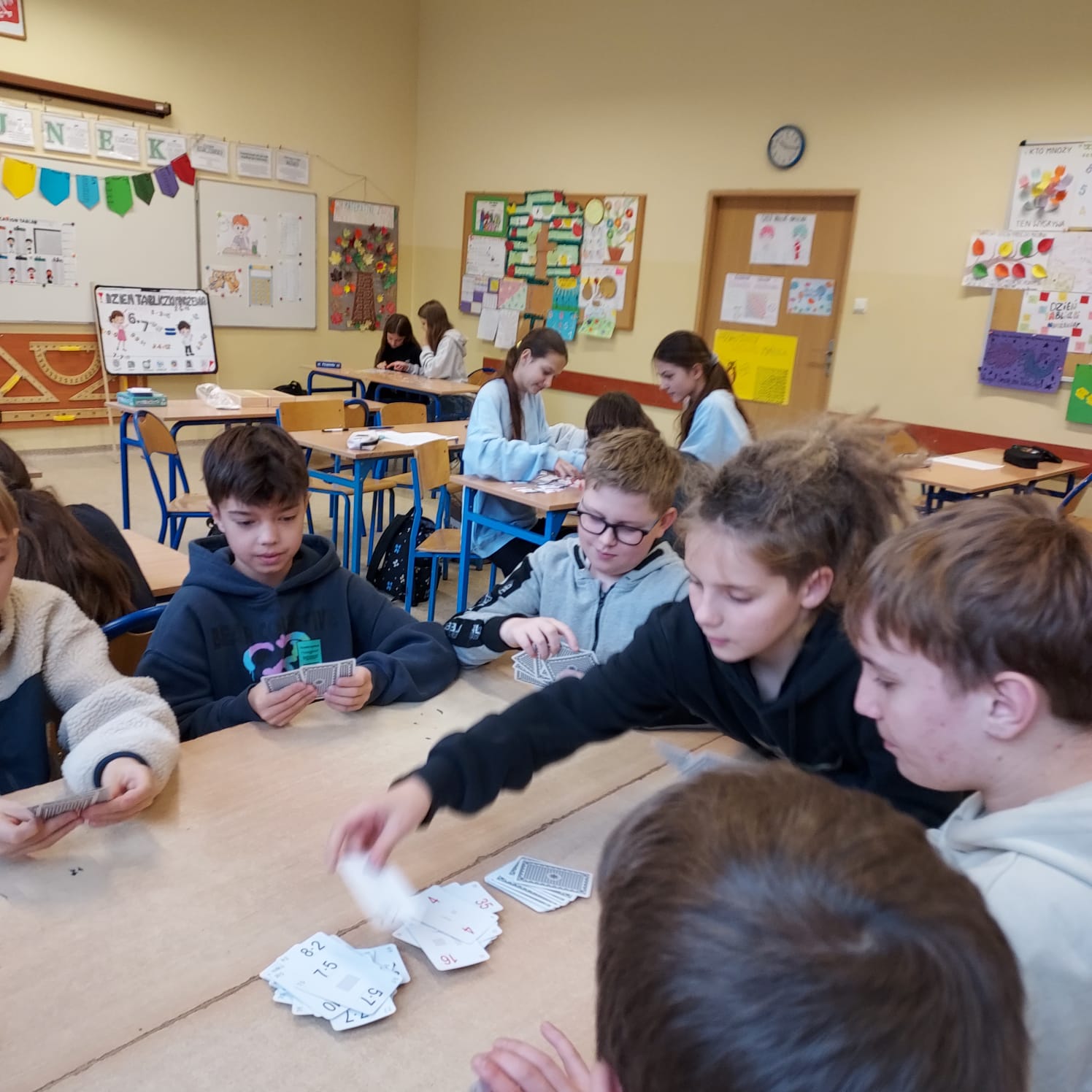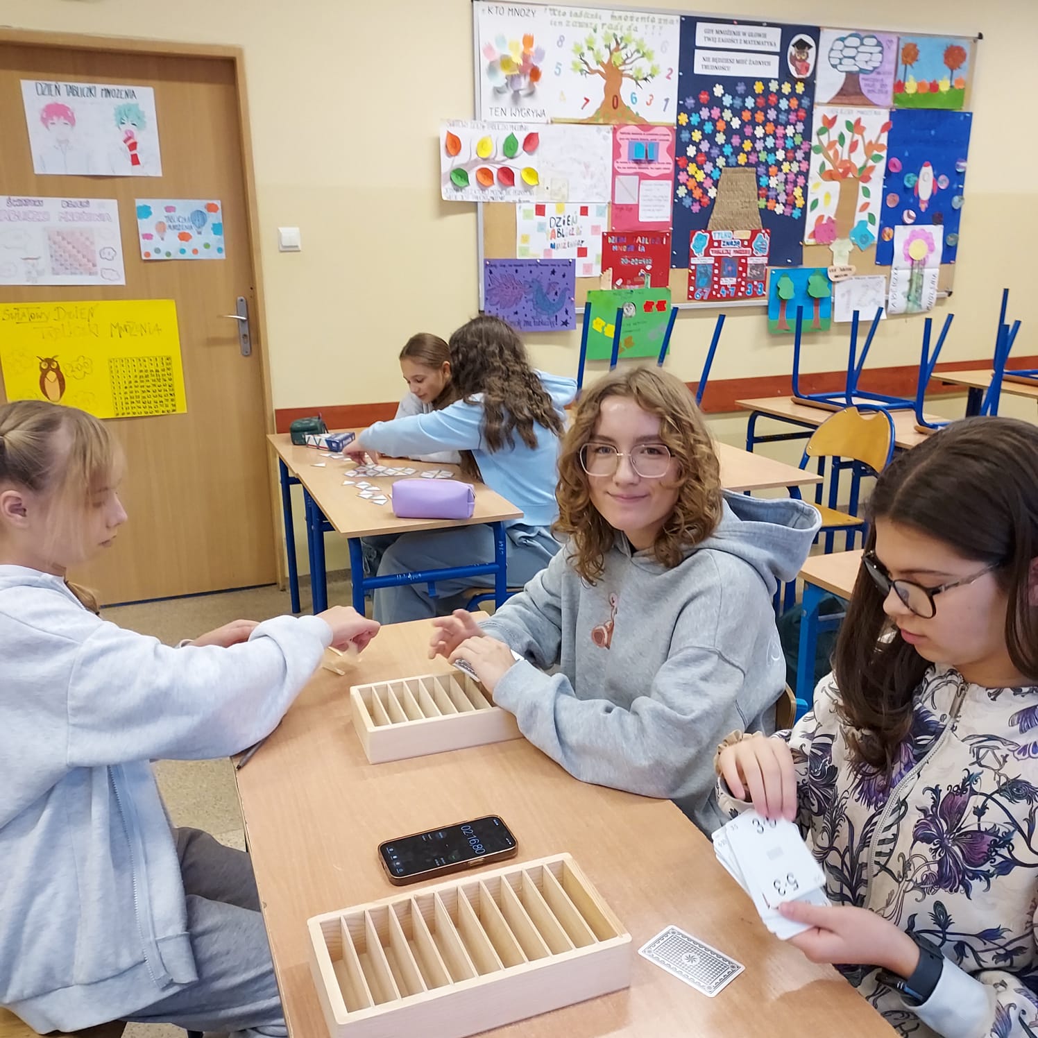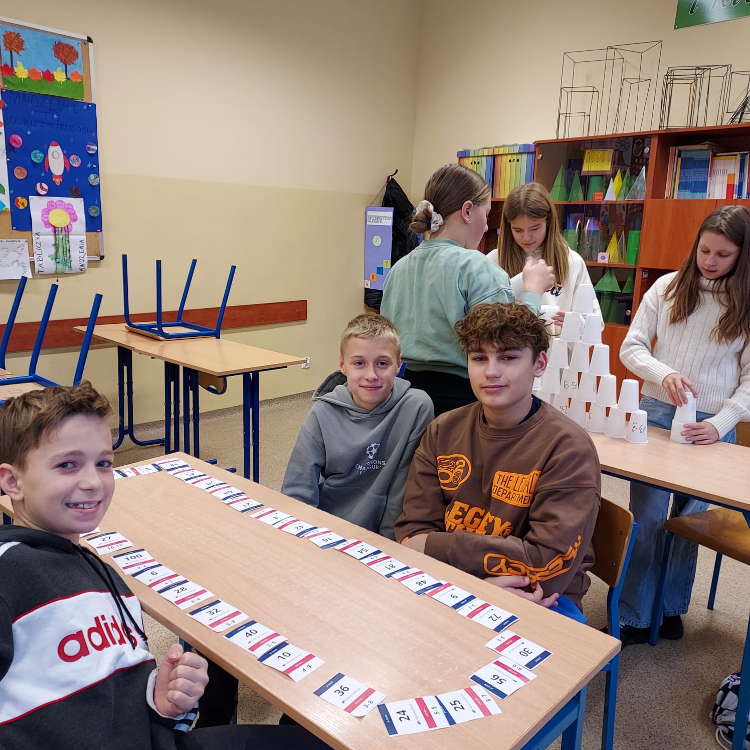 Dodatkowo, w czasie przerw, była sprawdzana znajomość tabliczki mnożenia wśród rówieśników – najlepsi otrzymali certyfikaty, sówki lub linijki z tabliczką mnożenia. Niecodzienne zajęcia z królową nauk, tj. matematyką, w tym dniu wzbudziły wśród naszej młodzieży wiele pozytywnych emocji, a wspólne radosne świętowanie na długo zostanie w ich pamięci. Gratulujemy Mistrzom, dziękujemy Egzaminatorom oraz wszystkim Uczestnikom tegorocznego wydarzenia.