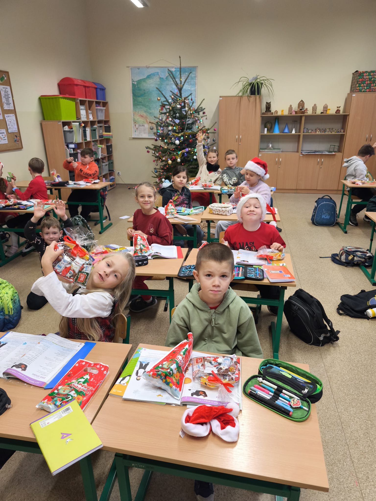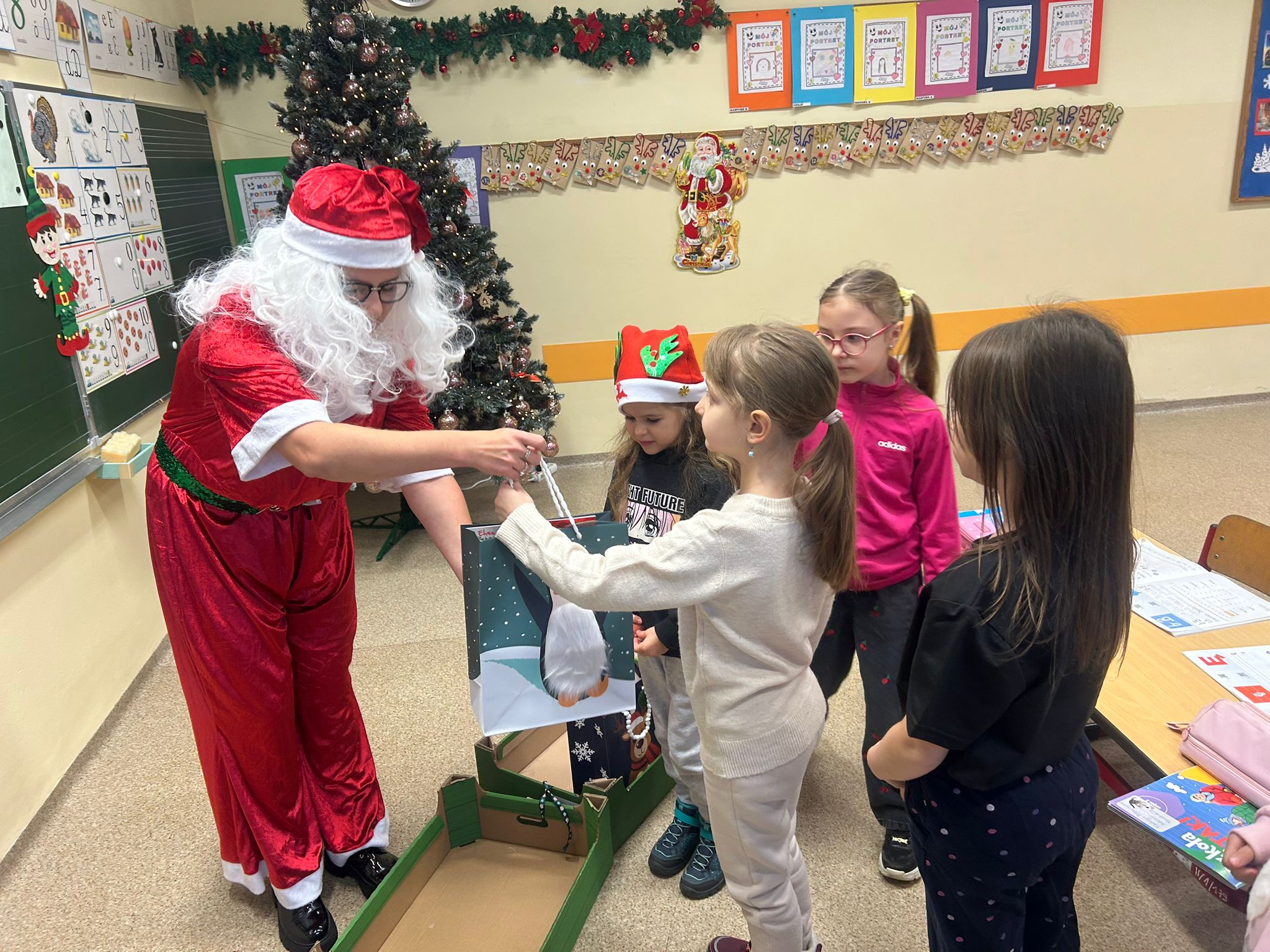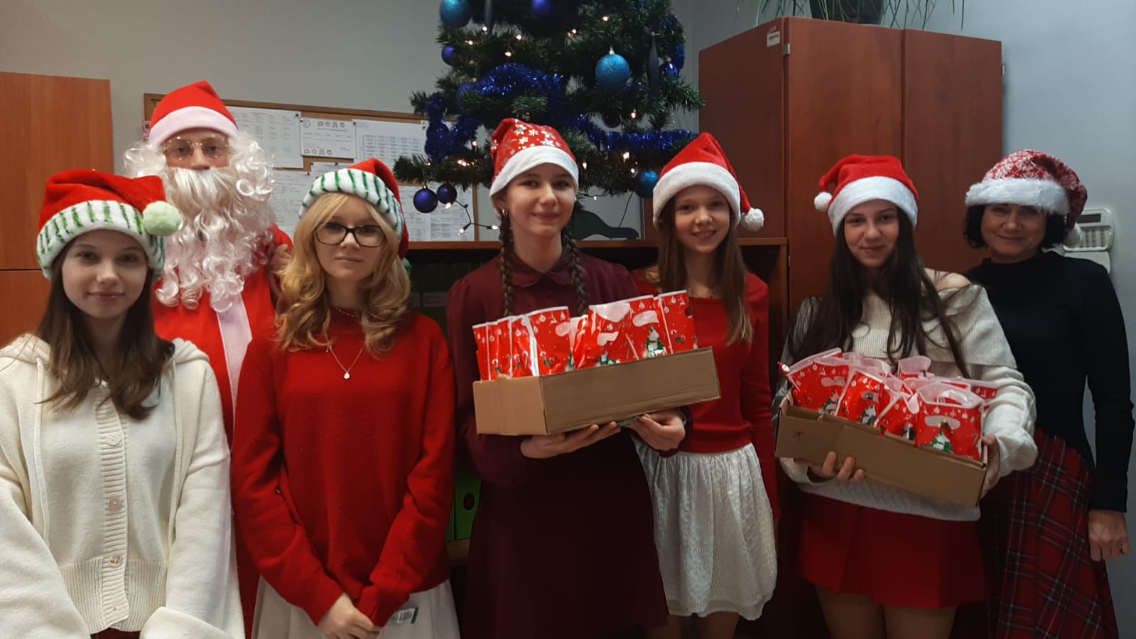 Dodatkowo każda klasa z wychowawcą przygotowała własne obchody – ze szkolnym Mikołajem w roli głównej. Z całego serca bardzo, bardzo dziękujemy! Opiekunem SU jest pani Agnieszka Janicka.