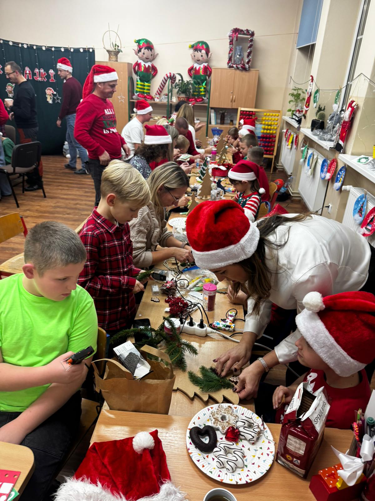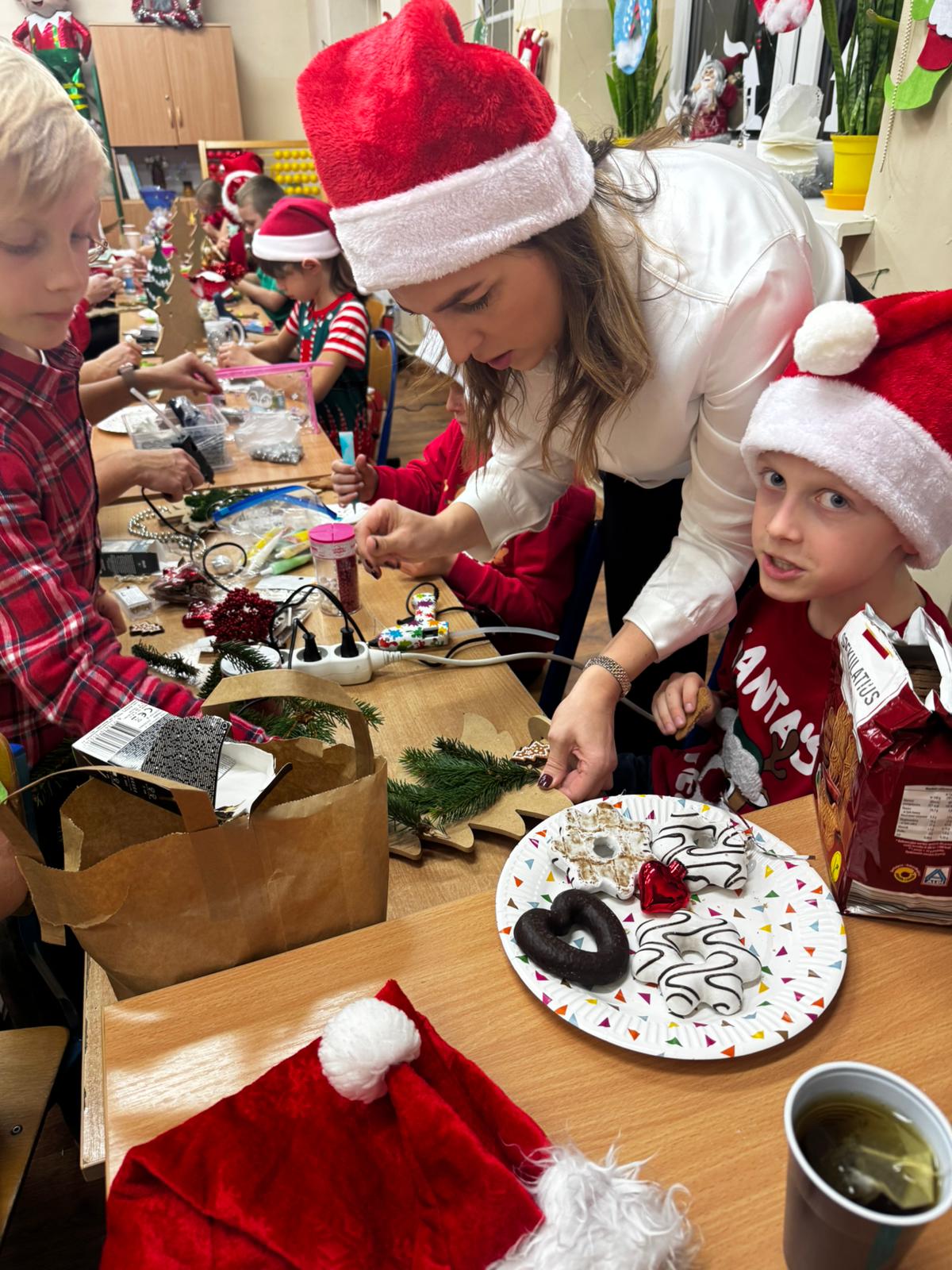 5 grudnia w naszej szkole zrobiło się naprawdę świątecznie! Podczas warsztatów dla uczniów klas trzecich i ich rodziców, czekało na wszystkich mnóstwo radości, kreatywnej zabawy. Uczniowie przygotowali piękny program artystyczny, który wprowadził wszystkich w świąteczny nastrój. Nic więc dziwnego, że chwilę później pojawił się najprawdziwszy Mikołaj z workiem pełnym prezentów! Tego dnia wspólnie tworzyliśmy stroiki świąteczne, ozdabialiśmy choinki i dekorowaliśmy pierniczki – a to wszystko w cudownej atmosferze.