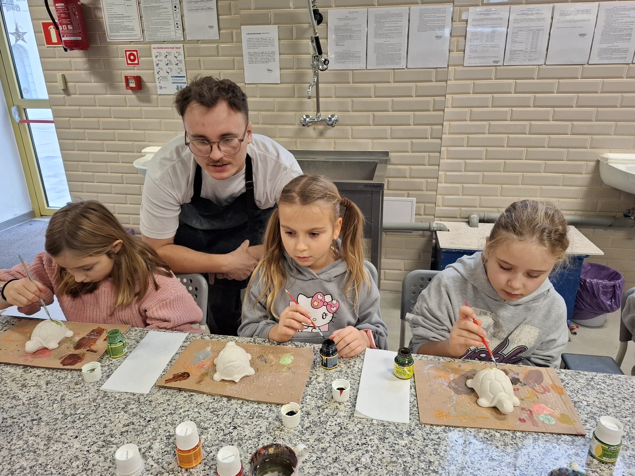4 grudnia 2025 roku klasy 2c, 3a, 3b i 3c ruszyły na podziemną przygodę do Starej Kopalni w Wałbrzychu! Zwiedziliśmy tajemnicze korytarze, poznaliśmy sekrety trudnej i niebezpiecznej pracy górnika. To nie koniec – wzięliśmy udział w warsztatach ceramicznych, malując słonie i żółwie jak prawdziwi artyści. Zmęczeni, ale szczęśliwi i bogatsi o nowe doświadczenia zjedliśmy pyszne tosty i frytki.